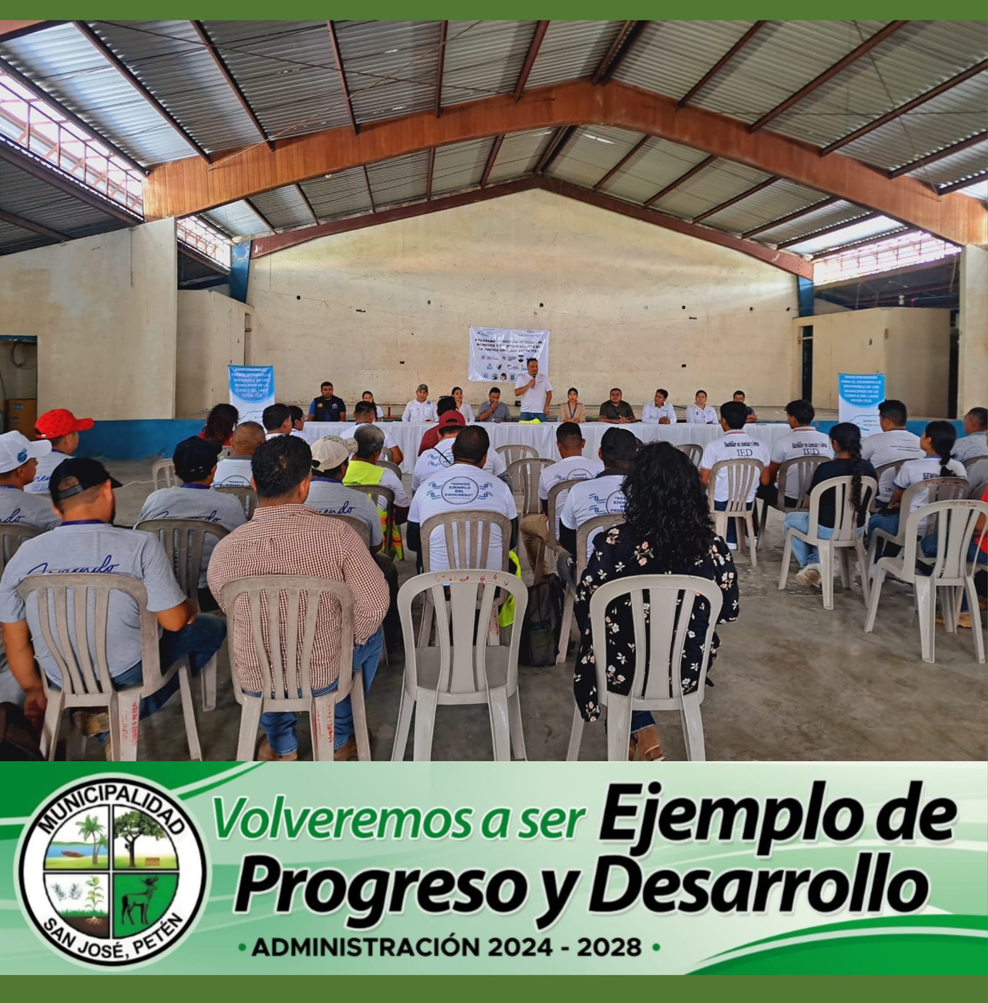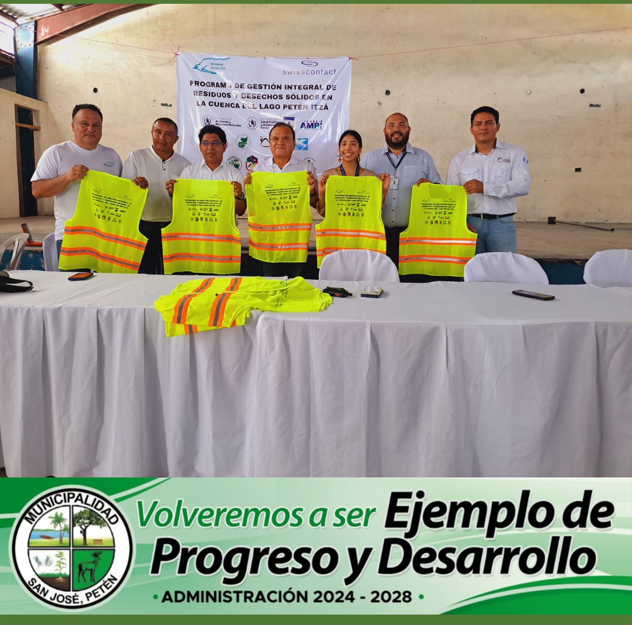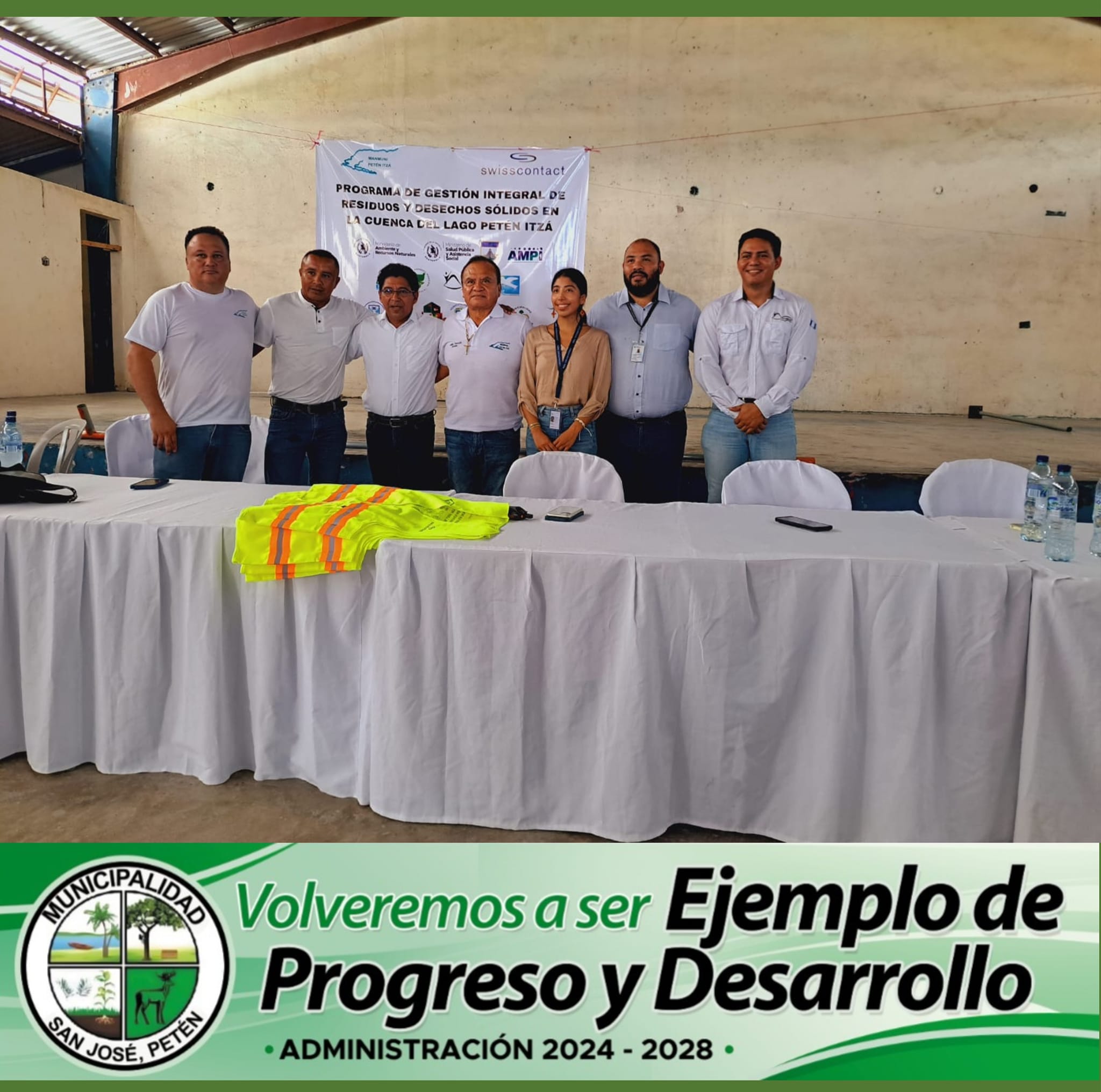 Este día, el señor Alcalde Licenciado Julian Tesucún, Presidente de la MANCOMUNIDAD, se hizo presente en el antiguo salón de San Andrés, Petén, acompañado del Alcalde de dicho municipio, para la apertura oficial del Programa de Gestión Integral de Residuos y Desechos Sólidos en la cuenca del Lago Petén Itzá.