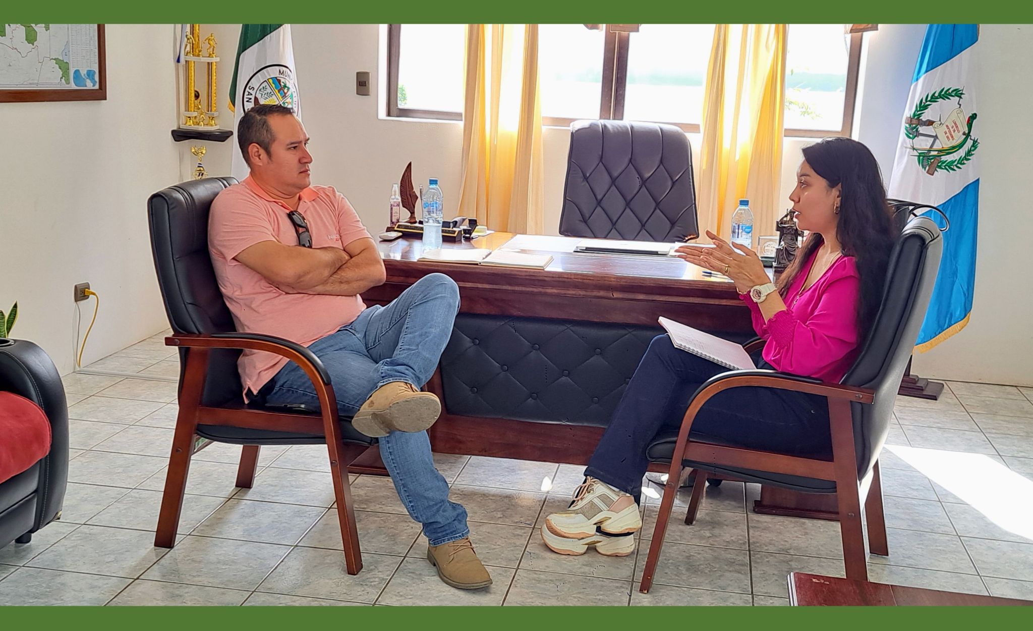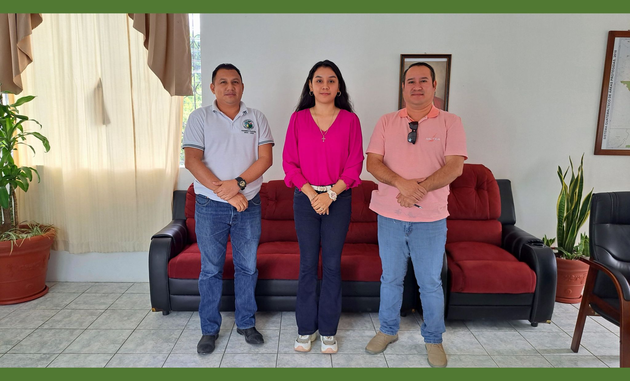 San José, Petén – jueves 30 de enero de 2025. Con el objetivo de fortalecer la coordinación interinstitucional en beneficio del municipio, el Síndico Primero, Vinicio Carrera, y el Secretario Municipal, Mario Cortes, recibieron en el despacho municipal a la delegada de la Oficina de Control de Áreas de Reserva del Estado (OCRET) en Petén, Joseline Cuellar.