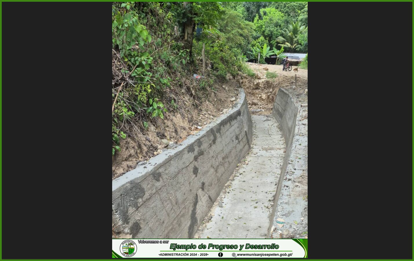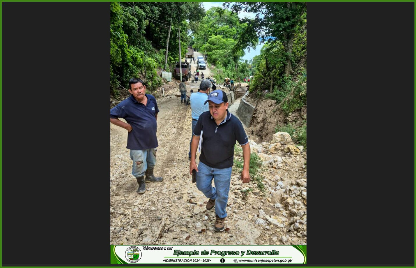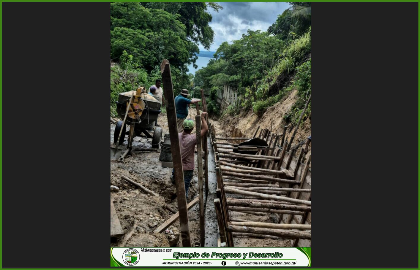 Gracias a las gestiones del señor Alcalde Municipal de San José, Petén, se ejecuta un importante proyecto en la comunidad de Jobompiche, que consiste en la construcción de un tramo de más de 300 metros de pavimento hidráulico, con sus respectivas cajas desarenadoras y cunetas para el adecuado manejo de aguas pluviales.